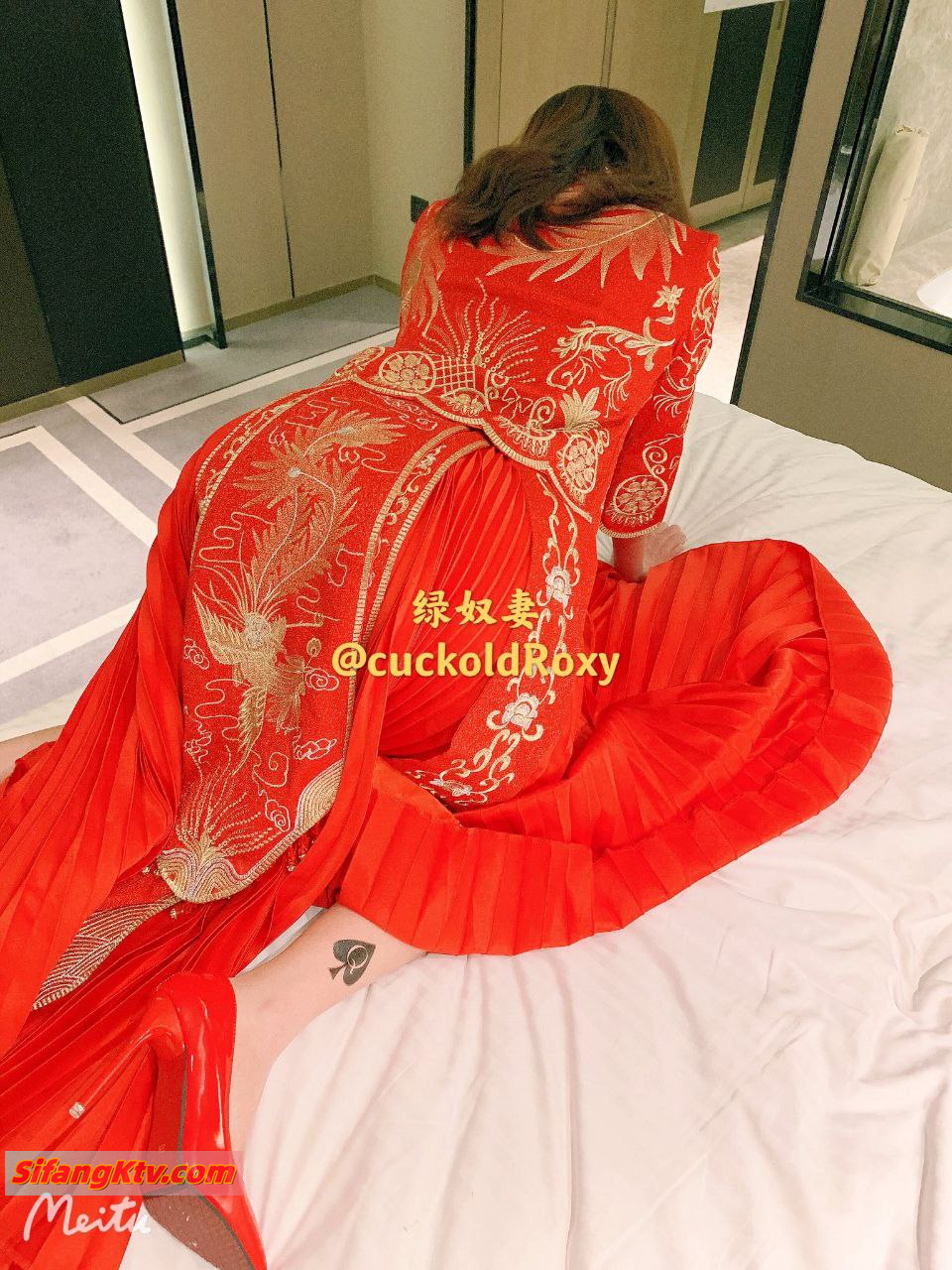 綠帽癖淫妻『綠奴妻』看著老婆和野男人做愛被內射 穿著嫁衣和情夫做愛 老公一旁觀戰 高清